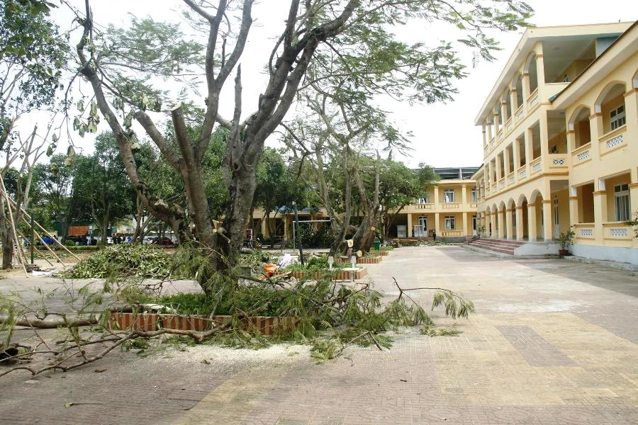 Trường học ở thị xã Cửa Lò còn ngổn ngang sau khi cơn bão số 10 đi qua.
