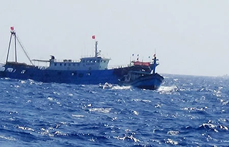 Tàu cá TQ không những xâm lấn vùng biển chủ quyền của Việt Nam mà còn hung hăng đâm vào tàu cá Việt Nam. Ảnh: INTERNET
