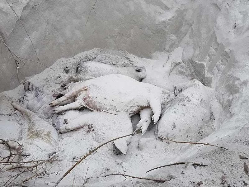 Tiêu hủy heo chết do mắc dịch tả heo châu Phi. Ảnh: THANH NHẬT