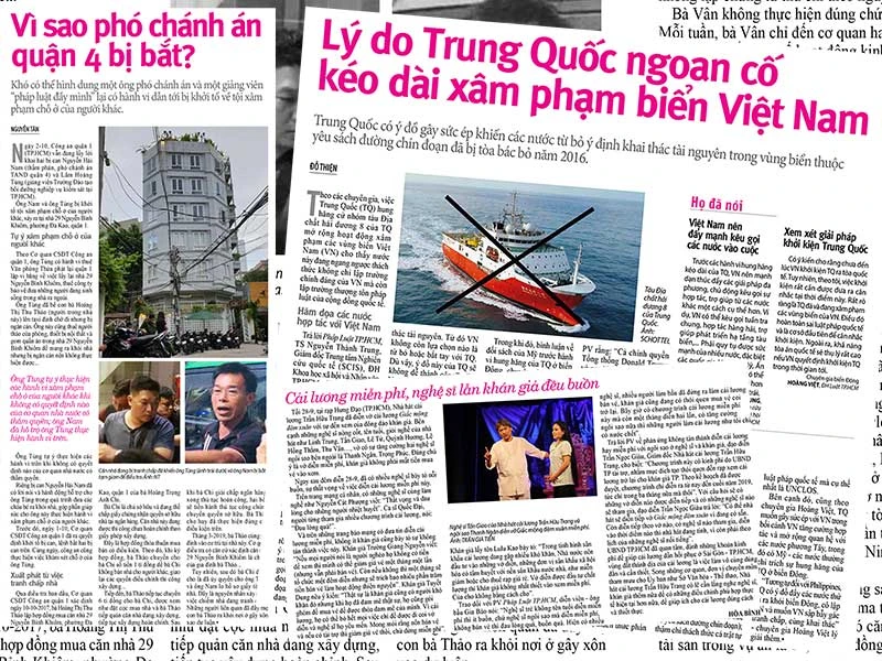 | Phản đối Trung Quốc xâm phạm vùng biển Việt Nam, chà đạp luật pháp quốc tế Trung Quốc (TQ) có ý đồ gây sức ép khiến các nước từ bỏ ý định khai thác tài nguyên trong vùng biển thuộc yêu sách đường chín đoạn đã bị tòa bác bỏ năm 2016. Theo các chuyên gia, việc TQ hung hăng cử nhóm tàu Địa chất hải dương 8 mở rộng hoạt động xâm phạm các vùng biển Việt Nam (VN) cho thấy nước này đang ngang ngược thách thức không chỉ lập trường chính đáng của VN mà còn tinh thần thượng tôn pháp luật của cộng đồng quốc tế. Bài viết “Lý do TQ ngoan cố kéo dài xâm phạm biển VN” nhận được nhiều bình luận của bạn đọc bày tỏ bức xúc trước thái độ ngang ngược của TQ khi có hành động xâm phạm biển của VN. • VN nên đổi cách đối phó với TQ. Ngoài việc đưa ra những luận điểm, quy định để vạch trần hành động vi phạm pháp luật của TQ thì chúng ta nên đẩy mạnh các biện pháp tuyên truyền, kêu gọi nhiều nước ủng hộ chính sách bảo vệ lãnh thổ, bảo vệ hòa bình biển Đông của chúng ta. Nguyễn Hùng Hậu • Tôi tin nhân dân TQ không muốn chiến tranh và không muốn xâm chiếm lãnh thổ của nước nào. Chúng ta phải làm sao cho người dân TQ biết việc phi nghĩa của một số lãnh đạo đất nước họ, một mặt phải nhờ cộng đồng quốc tế phản đối việc làm phi pháp hiện nay của TQ trước hành động xâm phạm biển Đông của VN. Hoàng Thanh Linh |