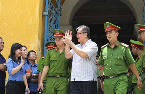 Phạm Công Danh tươi cười sau khi nghe tuyên án. Ảnh: HOÀNG YẾN