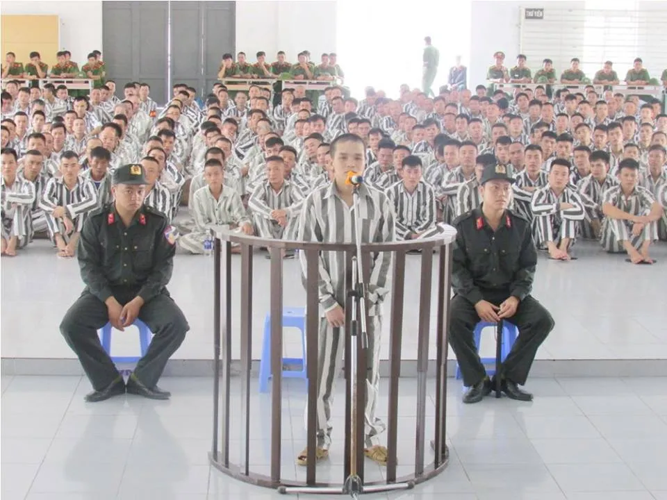 Bị cáo Nguyễn Văn Huỳnh tại buổi xét xử lưu động ở trại giam Quảng Ninh