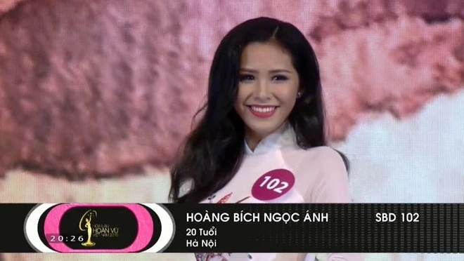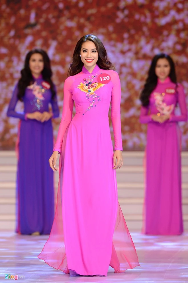 20 giờ: 44 thí sinh bước vào phần thi đầu tiên đó là trang phục áo dài, với sự tài trợ trang phục của nhà thiết kế Thuận Việt.