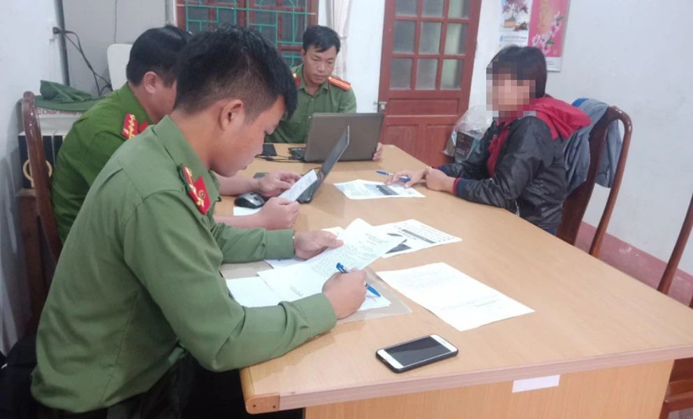 Công an làm việc với chị Thơm. Ảnh: CA.