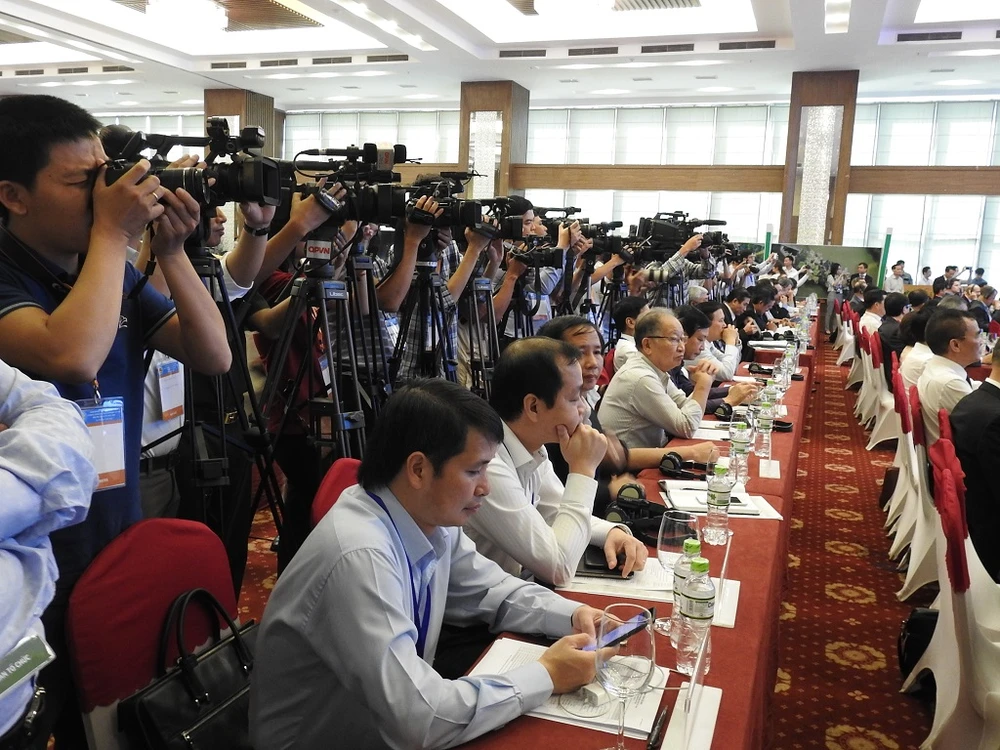 Các đại biểu chú ý đặc biệt đến tác động của biến đổi khí hậu, nước biển dâng thời gian gần đây. Ảnh: TRẦN VŨ