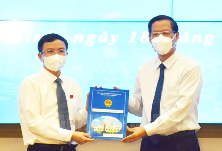 | Trước đó, hôm 18-10, Chủ tịch UBND TP.HCM Phan Văn Mãi đã trao quyết định của UBND TP về việc tiếp nhận và bổ nhiệm ông Đặng Quốc Toàn, Bí thư Quận ủy quận 10, giữ chức vụ Chánh Văn phòng UBND TP.HCM. Ngay sau đó, Ban Thường vụ Thành ủy TP.HCM có quyết định chỉ định ông Đặng Quốc Toàn, Chánh Văn phòng UBND TP.HCM, giữ chức Ủy viên Ban cán sự Đảng UBND TP.HCM nhiệm kỳ 2021-2026. |