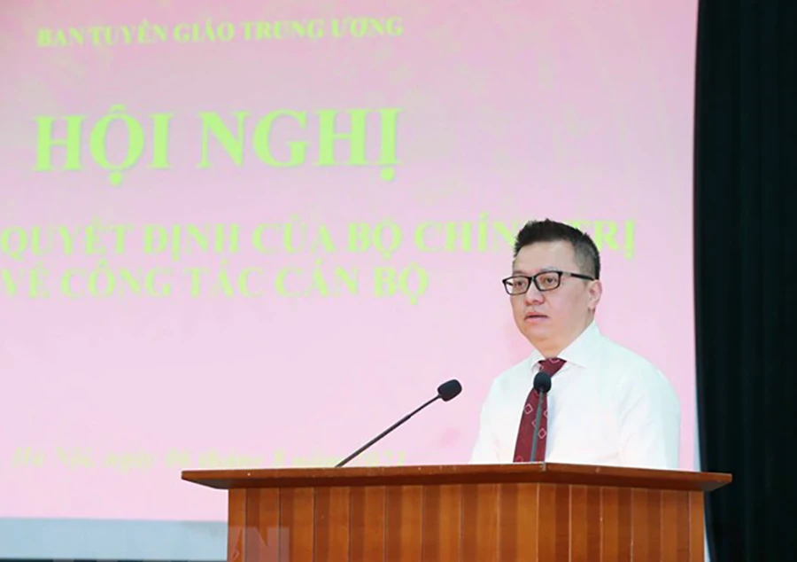 Phó Trưởng Ban Tuyên giáo Trung ương Lê Quốc Minh phát biểu nhận nhiệm vụ. Ảnh: TTXVN