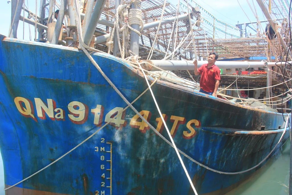 Tàu cá Qna 91441 tố bị tàu Trung Quốc cướp khoảng hai tấn mực khô. Ảnh: THANH NHẬT