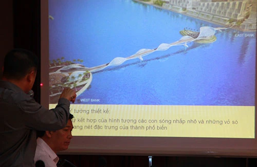 Đại diện chủ đầu tư cầu đi bộ Vỏ Sò trình bày về dự án tuy nhiên nhiều ý kiến trong cuộc làm việc cho rằng xây cầu này là chưa cần thiết. LÊ PHI.
