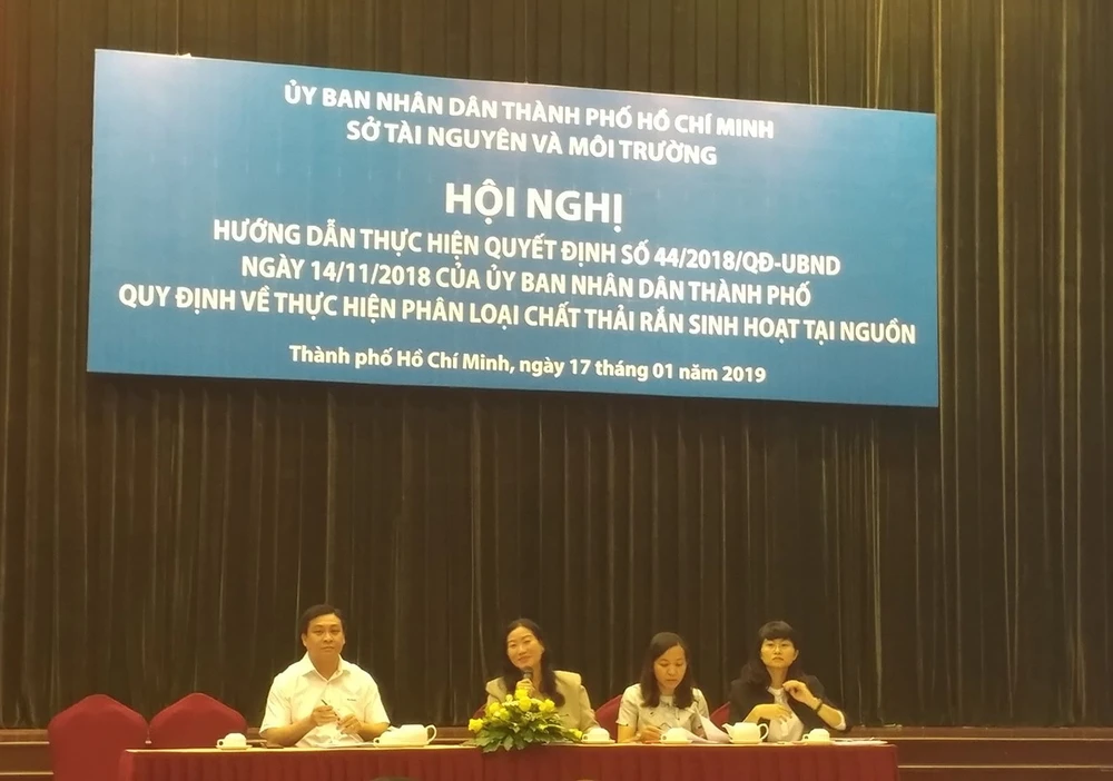 Sáng 17-1, Sở TN&MT TP.HCM tổ chức hội nghị hướng dẫn thực hiện Quyết định số 44/2018/QĐ-UBND về phân loại rác sinh hoạt tại nguồn trên địa bàn TP.HCM. Hội nghị có sự tham gia của nhiều đơn vị liên quan.