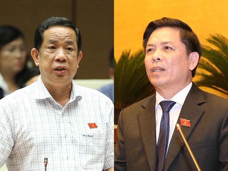 Phó Chủ nhiệm ủy ban về các vấn đề xã hội của Quốc hội Đặng Thuần Phong (trái) và Bộ trưởng Bộ GTVT Nguyễn Văn Thể phát biểu tại hội trường. Ảnh: TTXVN