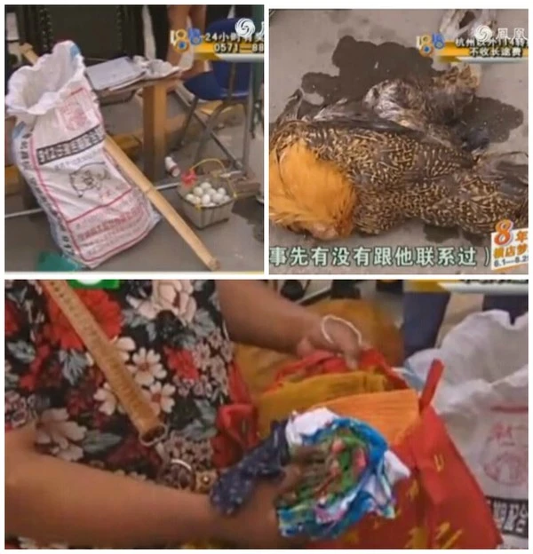 Ngày hôm sau, khi bà Ding khệ nệ mang theo đủ loại đồ ăn như mì, dăm bông, quần áo, trứng gà và gà còn sống và gọi điện cho con trai thì anh này "biến mất", không chịu nghe điện thoại.
