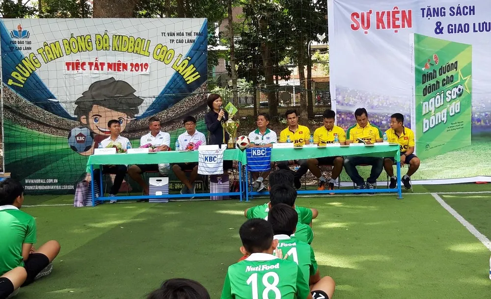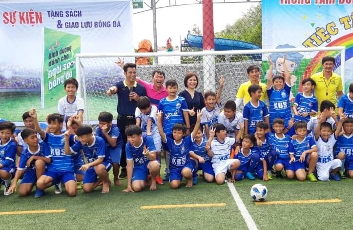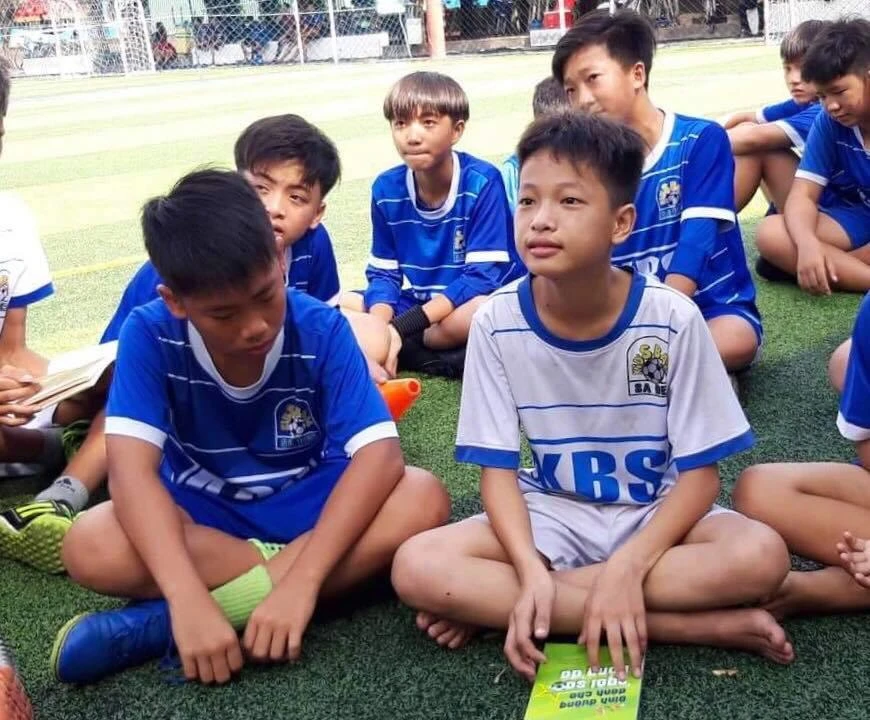 Các chuyên gia dinh dưỡng NitiFood thăm hỏi và tặng sách cho cầu thủ nhí của "lò" đào tạo KBT.