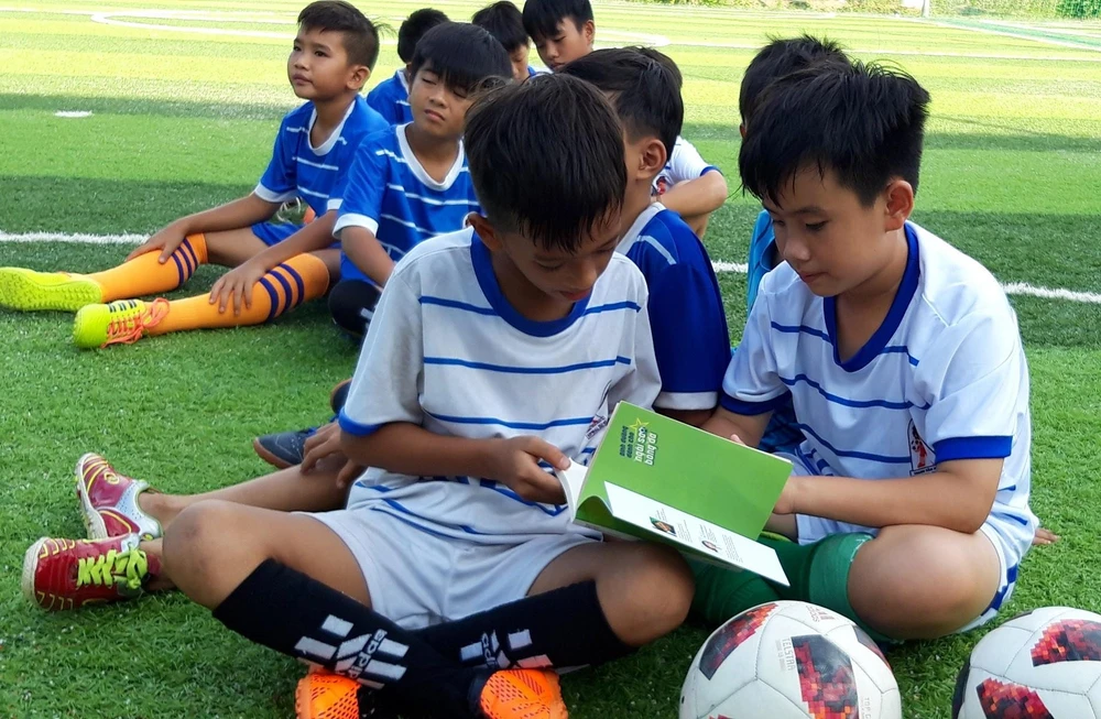 Học viên KBT chăm chú đọc sách "Dinh dưỡng danh cho ngôi sao bóng đá"