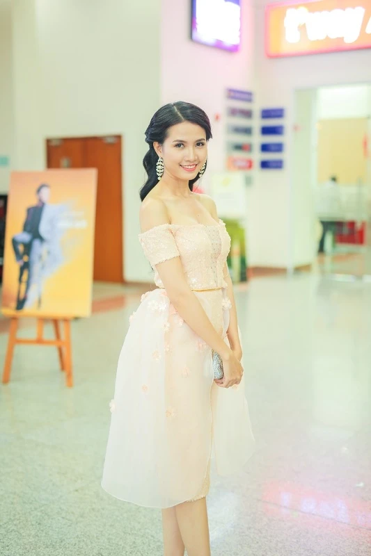 Đến chúc mừng MV “Màu đời” của Phạm Hồng Minh, Phan Thị Mơ diện váy hồng ren, gợi cảm như công chúa. Người đẹp tự tin khoe vai trần gợi cảm trước ống kính.