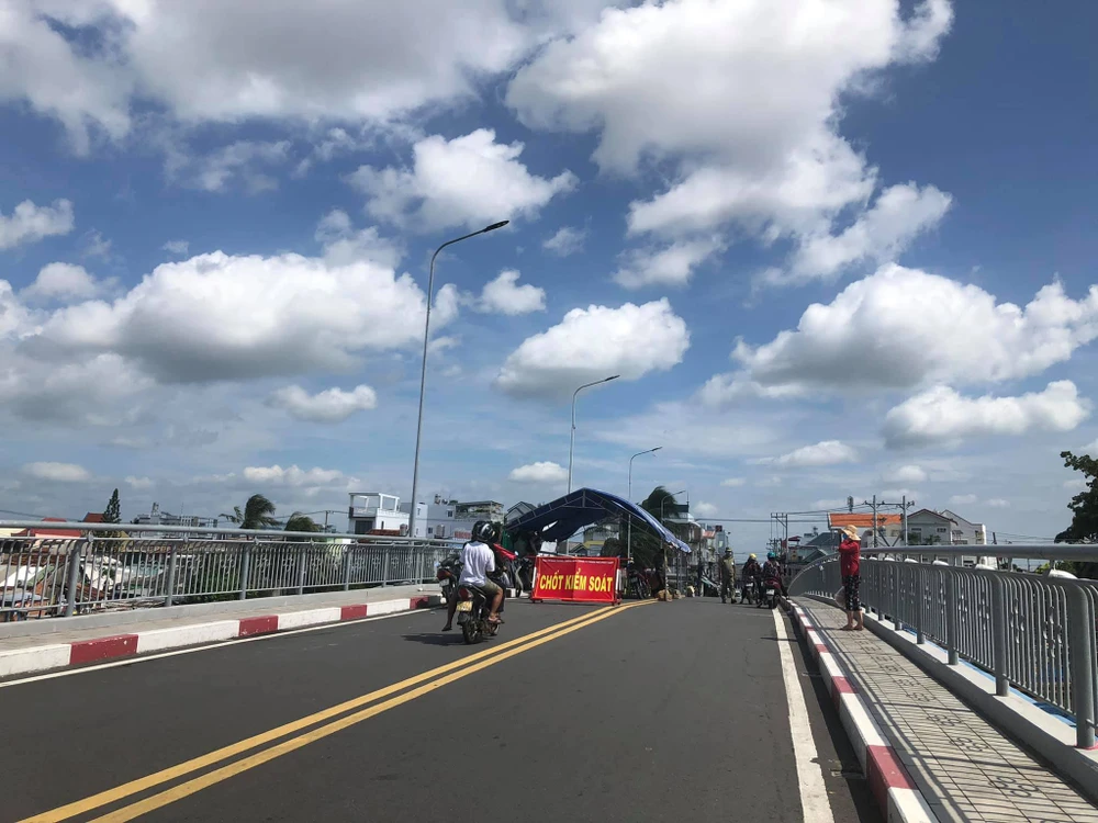 Chốt kiểm soát trên cầu Trần Hưng Đạo, Phan Thiết. Ảnh: NVA