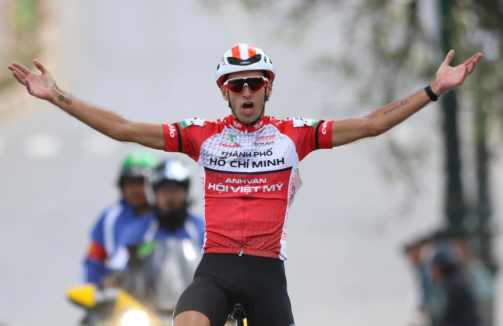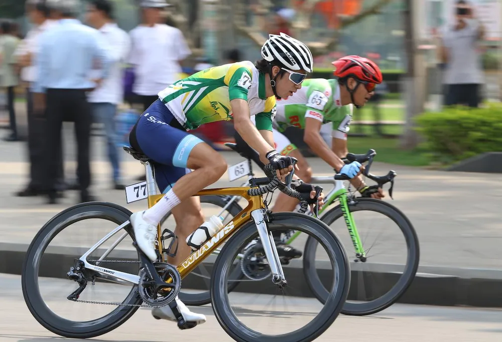Tay đua Gong Hyo-suk người Hàn Quốc trong màu áo Gạo Hạt Ngọc Trời An Giang rất xuất sắc nhưng không thể xé áo vàng được. Ảnh: HUY PHẠM