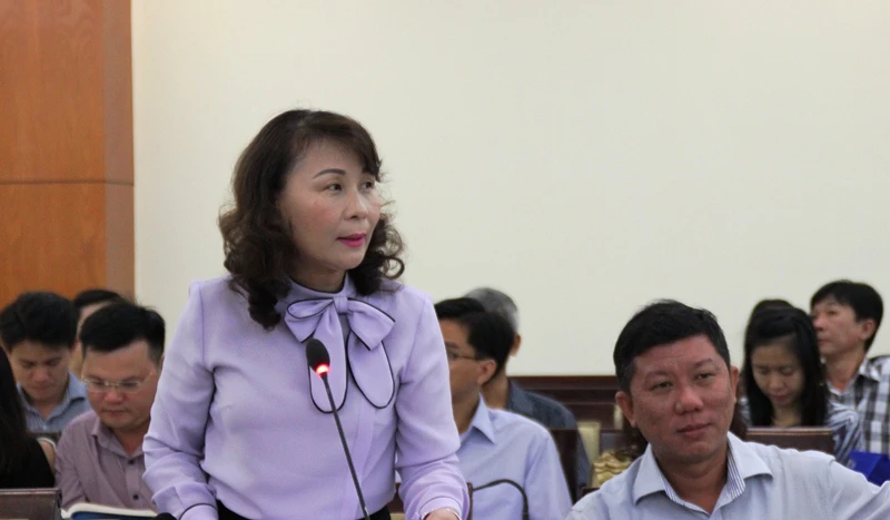 Bà Lê Thị Bình Minh, Phó Giám đốc Sở Tư pháp TP.HCM, phát biểu tại buổi tọa đàm. Ảnh: TÁ LÂM