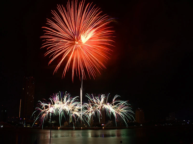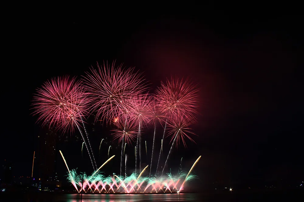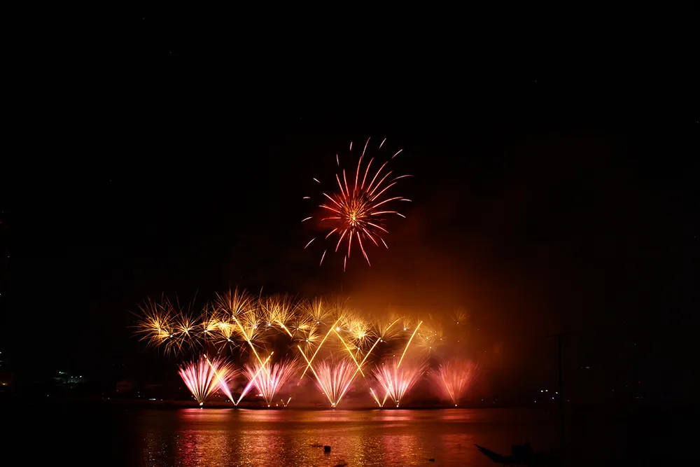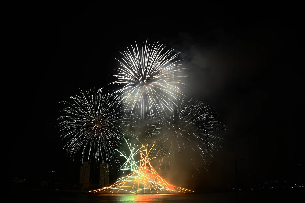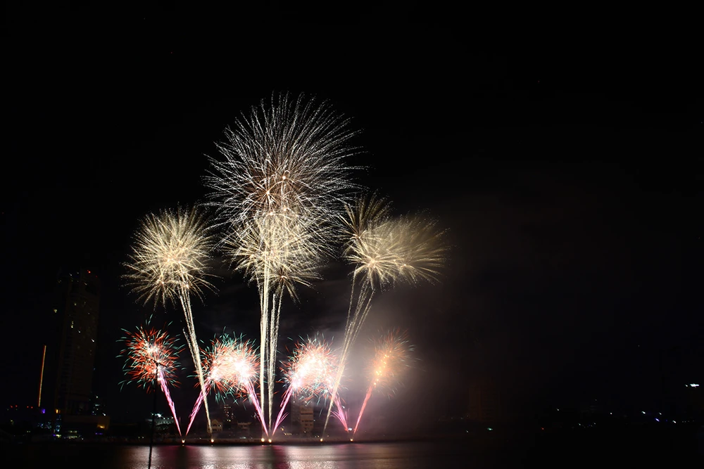 Đội SUGYP SA đã thiết kế một màn biểu diễn pháo hoa phù hợp với địa điểm của DIFF 2017 với sông nước, núi non và không gian rộng lớn. Ảnh N.T