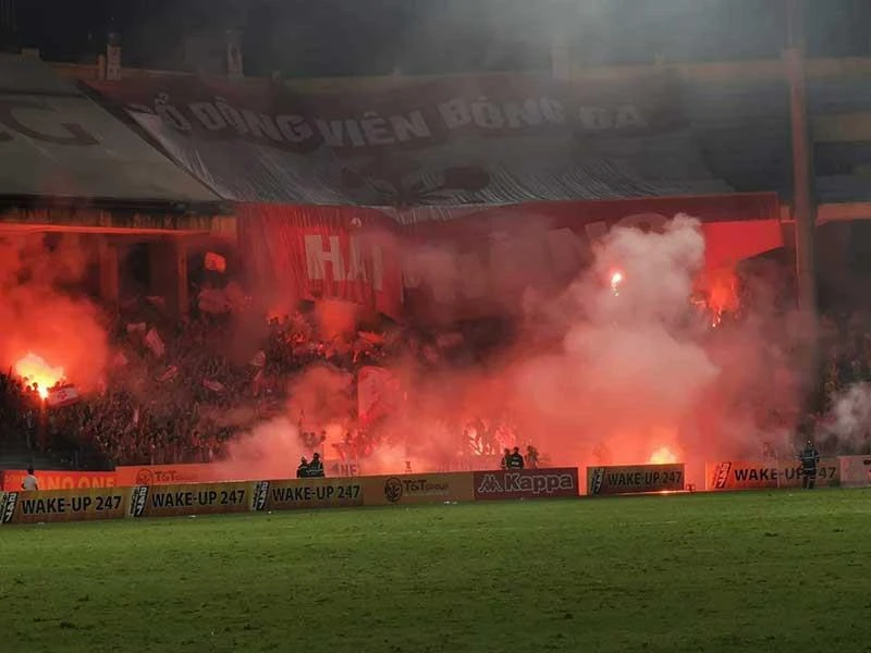 Vòng 6 V-League, các cổ động viên Hải Phòng liên tục đốt pháo sáng trên khán đài và ném bừa bãi xuống mặt cỏ khi cầu thủ đang thi đấu trong sự bất lực của ban tổ chức (BTC) sân Hàng Đẫy. Trọng tài đã phải cho dừng trận đấu nhiều lần để vãn hồi trật tự.