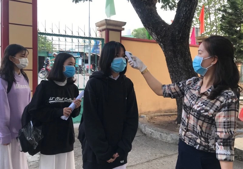 Kiểm tra thân nhiệt học sinh. Ảnh minh họa