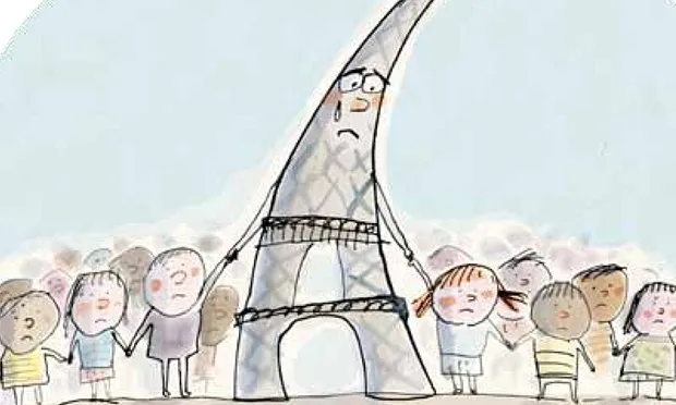 Ngoài ra, tờ rơi còn có một số hình ảnh hoạt hình, trong đó có cảnh tháp Eiffel nhỏ nước mắt khi cầm tay một nhóm trẻ em.