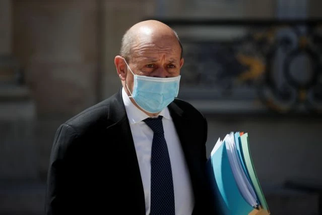 Ngoại trưởng Pháp Jean-Yves Le Drian đeo khẩu trang tại Cung điện Elysee ở Paris, ngày 29-7. Ảnh: REUTERS