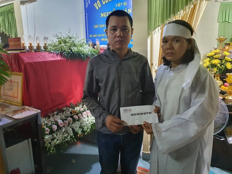 Tổng cộng, báo Pháp luật TP.HCM đã trao 65 triệu đồng tiền hỗ trợ của bạn đọc cho gia đình các liệt sĩ.