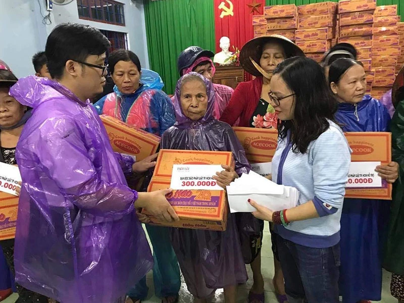 Trước đó, ngày 17-10, báo Pháp Luật TP.HCM đã trao 200 phần quà của các mạnh thường quân, bạn đọc hảo tâm cho 200 hộ dân tại huyện Phong Điền, Thừa Thiên- Huế. Mỗi phần quà gồm một thùng mì tôm Acecook và 300.000 đồng.