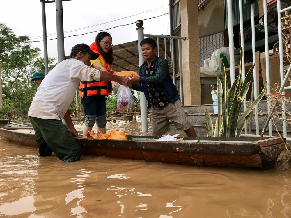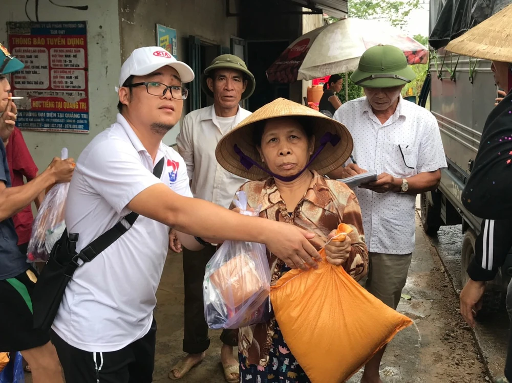 Tại thôn Phú Liêu, xã Triệu Tài, huyện Triệu Phong (Quảng Trị), đoàn cứu trợ đã trao 180 suất quà. Mỗi suất gồm: Gạo, bánh mì, nước mắm, bột ngọt và sữa giúp người dân nơi đây có thể sử dụng ngay để chống chọi với bão lũ cũng như mưa lớn kéo dài trong những ngày tới.