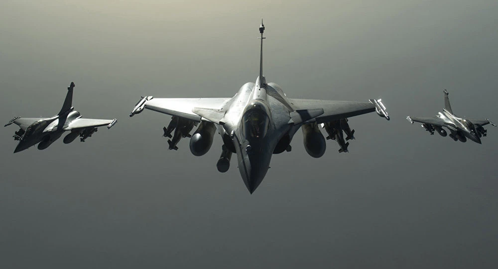 Các tiêm kích Rafafe của Pháp bay về hướng Syria như một phần trong chiến dịch Chammal phát động tháng 9-2015. Ảnh: AP