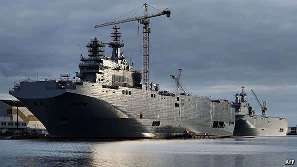 Pháp đã kí hợp đồng 1,5 tỷ đô-la đóng hai tàu sân bay trực thăng lớp Mistral cho Nga năm 2011. Tuy nhiên, vào 11-2014 Pháp hủy hợp đồng vơi lý do Nga tham gia vào cuộc khủng hoảng nội bộ tại Ukraine.