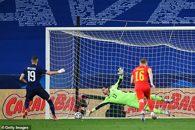Benzema bỏ lỡ cơ hội ghi bàn trên chấm 11 mét trong ngay trở lại khoác áo tuyển Pháp. Ảnh: Getty Images.