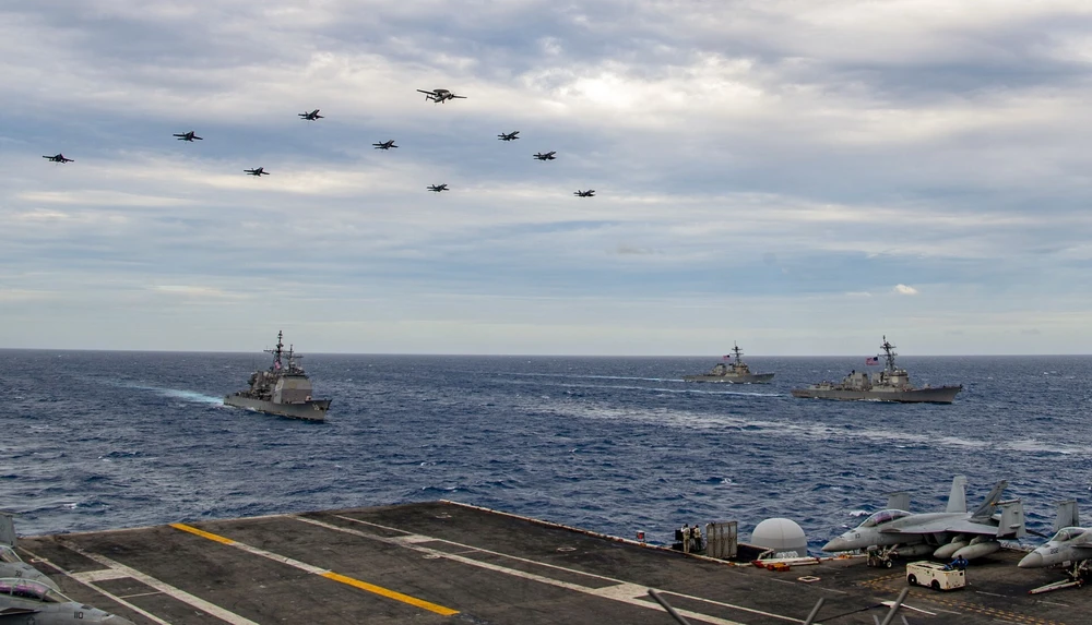 Hai nhóm tác chiến tàu sân bay Mỹ cùng hiện diện tại Biển Đông ngày 9-2. Ảnh: HẢI QUÂN MỸ