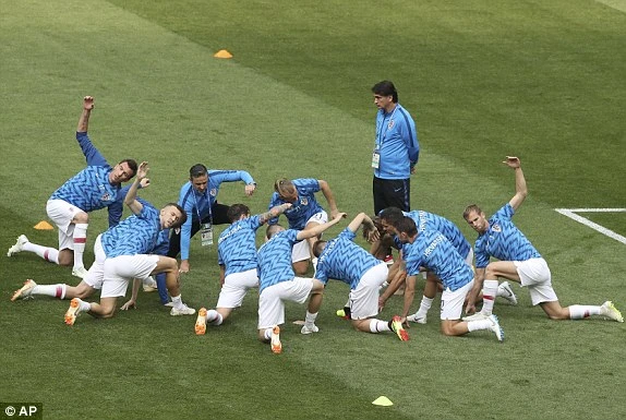 Các cầu thủ Croatia khởi động trên sân Luzhniki.