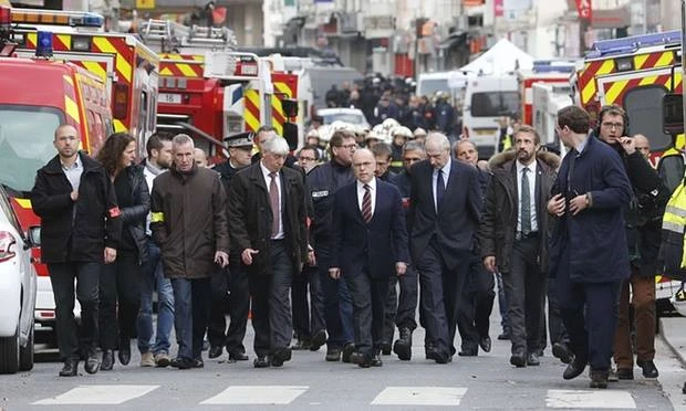 Bộ trưởng Bộ nội vụ Pháp (giữa) ông Bernard Cazeneuve có mặt tại hiện trường cuộc bố ráp ở St.Denis ngày 18-11