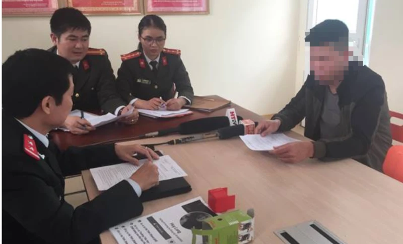 Công an và Thanh tra Sở TT&TT tỉnh Hà Tĩnh làm việc với ông Long. Ảnh: Cổng thông tin điện tử Hà Tĩnh