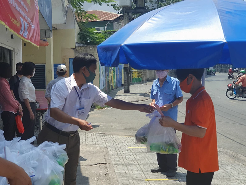 Quận 10: Chùa Long Hoa, quận 10 trao tận nhà cho người dân địa phương.