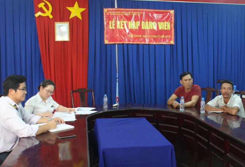 Hai chủ trại heo (bên phải) làm việc với cơ quan chức năng. Ảnh: Vũ Hội