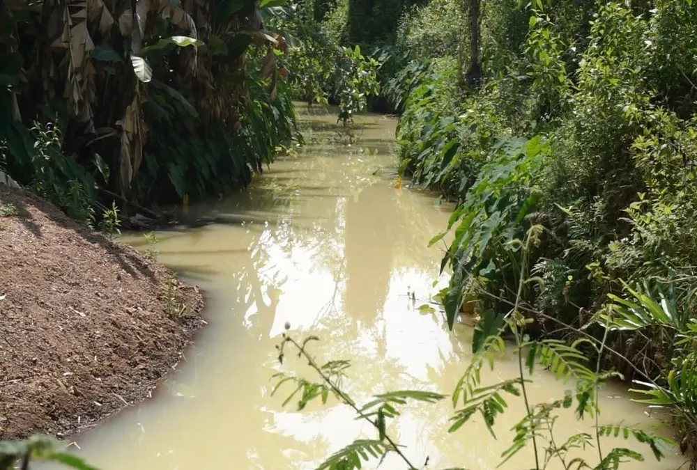 Nước thải có màu trắng đục, bốc mùi thuốc trừ sâu tại thời điểm người dân phát hiện. Ảnh: HẢI HIẾU