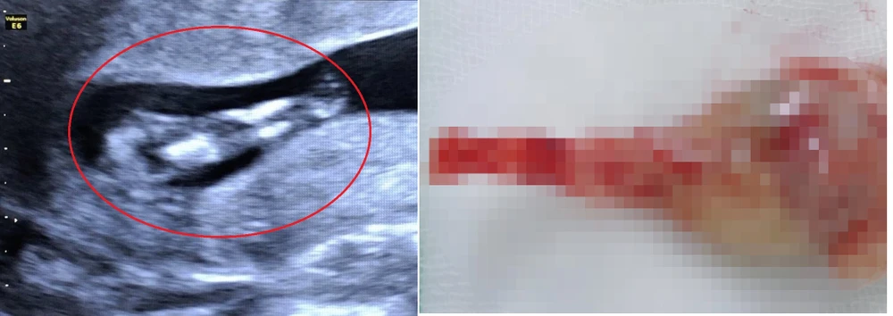 Thai phụ (32 tuổi) đến thăm khám thai định kỳ với tuổi thai 11 tuần 5 ngày. Qua kết quả hình ảnh siêu âm cho thấy thai nhi hai chân dính vào nhau giống như đuôi cá. Ngoài ra, thai nhi còn có bất thường bàng quang và hệ tiết niệu, dây rốn một động mạch.