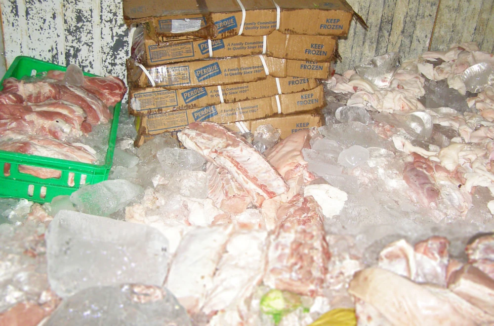 Thịt các loại bảo quản lạnh cũng bị biến chất. Ảnh: TRẦN NGỌC