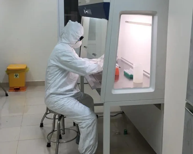 Xét nghiệm COVID-19 tại Viện Sốt rét- Ký sinh trùng- côn trùng Quy Nhơn. Ảnh: VIỆN SỐT RÉT - KÝ SINH TRÙNG - CÔN TRÙNG QUY NHƠN