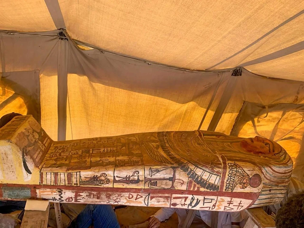 Những bức ảnh do Bộ cổ vật cung cấp cho thấy các quan tài bằng gỗ được bảo quản tốt, trên thân có những bức tranh tượng hình được trang trí công phu và phức tạp. Những chiếc quan tài này đã được chôn cất từ 2.500 năm trước.