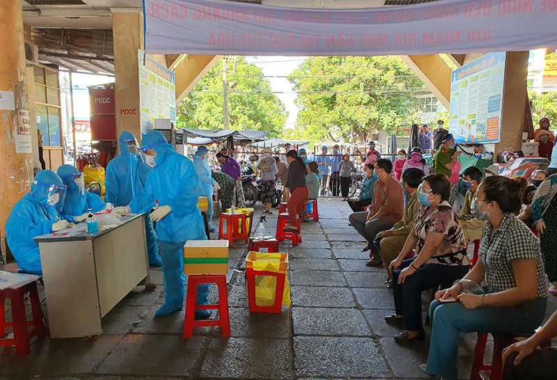 Trước nguy cơ dịch bệnh lây lan, bùng phát tại chợ Tuy Hòa - chợ lớn nhất tỉnh Phú Yên với 1.620 sạp hàng- Trung tâm Y tế TP Tuy Hòa đang tiến hành xét nghiệm COVID-19 cho toàn bộ tiểu thương, người phụ bán, người lao động ở chợ.
