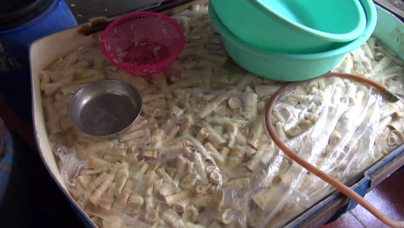 Trước đó, ngày 12-4, Đội Cảnh sát môi trường, Công an TP Vinh kiểm tra tại gia đình ông Lợi phát hiện 91 thùng phuy nhựa, hai tẹc chứa măng đang ngâm trong nước và 30 bao tải đựng măng tươi. Tổng cộng khoảng 5 tấn măng đang bốc mùi hôi thối, xuất hiện nhiều dòi, bọ, dán chết nổi trong thùng đựng măng. Số măng trên, ông Lợi mua về để ngâm "chế biến" thành măng "sạch" bán ra thị trường cho người dân mua ăn.