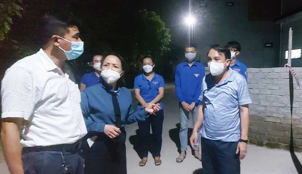 Lãnh đạo Sở Y tế tỉnh Nghệ An và Thị ủy Cửa Lò đi kiểm tra, chỉ đạo công phòng, chống dịch COVID-19 ở phường Nghi Hải. Ảnh: T.HÀNH