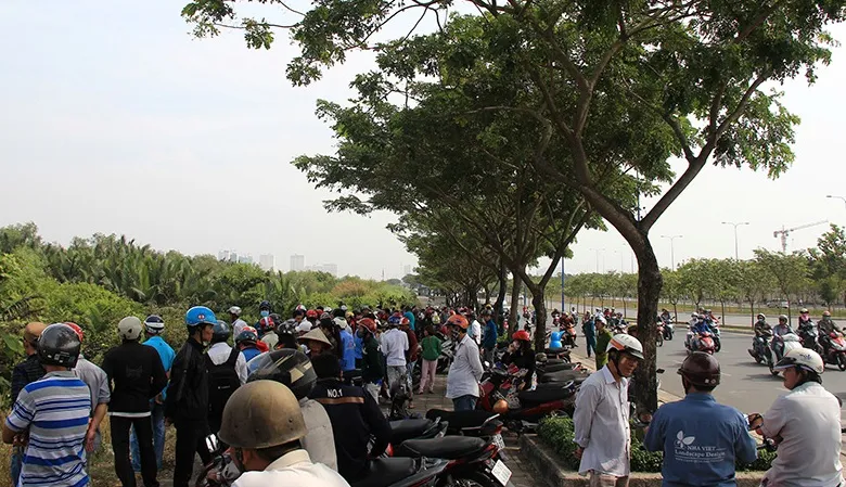 Nghe tin xác có người chết, hàng trăm người hiếu kỳ tụ tập trên đường Mai Chí Thọ, (dưới chân cầu Kênh 1) để xem.