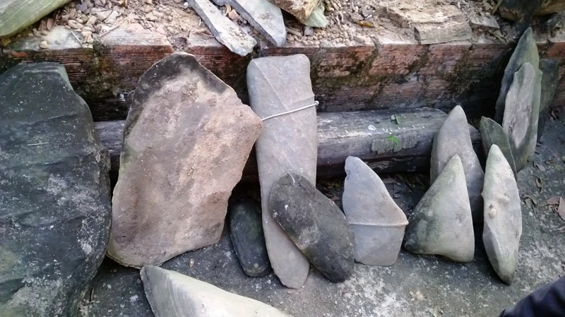 Các thanh đá cấu thành bộ đàn đá cổ tại nhà ông Huyền