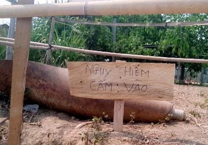 Đây là quả bom còn sót lại từ thời chiến tranh chống Mỹ, có chiều dài hơn 1m, nặng khoảng 250kg.